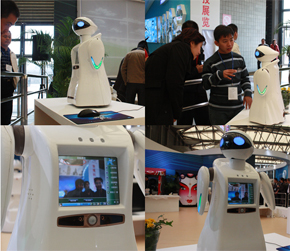 在多機器人系統(tǒng)技術(shù)展區(qū)中,由上海廣茂達伙伴機器人有限公司研發(fā)的家居教育機器人成為了眾多參觀者關(guān)注的焦點,家居教育機器人外觀上采用類人造型,整體采用模塊化結(jié)構(gòu),頭、雙臂、驅(qū)動、和主體都自成體系。這款全新的家庭教育機器人不僅模樣可愛,而且還有語音對話、人臉識別、環(huán)境偵測、網(wǎng)絡(luò)教學、流程圖編程等功能,可通過高亮LCD觸摸屏以及語音方式與用戶進行交互。該款家居教育機器人已確定將在明年的世博會上展示,并在2010年面向全球發(fā)售。