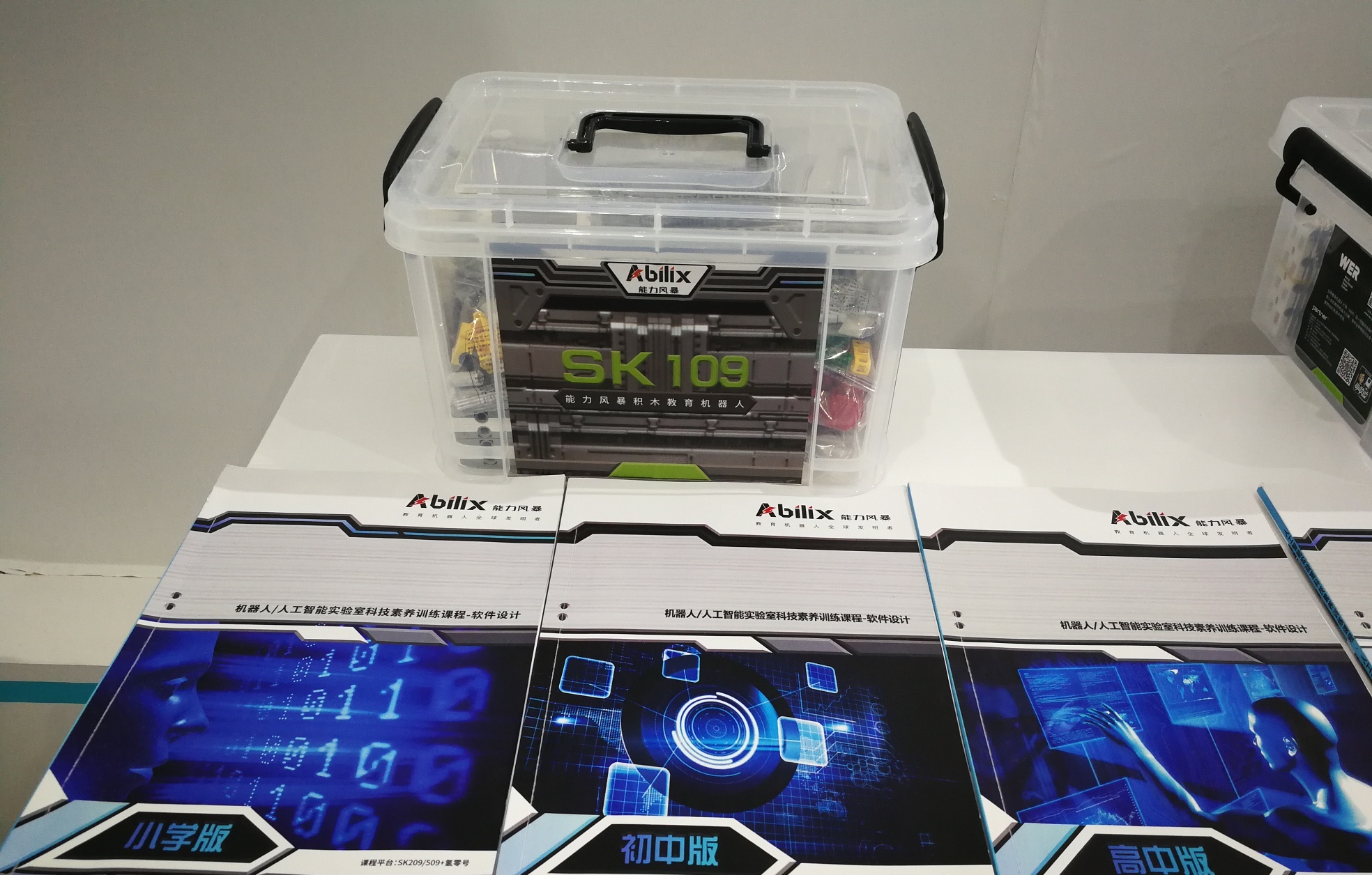 本次展會能力風暴攜四款新產品驚艷亮相。SK109兼具實惠和適用雙重功效的編程教育專用課程平臺是入門首選。SK909是為人工智能,機器人、編程等課程量身定制的高端積木教育機器人,搭載與智能手機同等級的觸摸屏和處理器,擁有革命性的項目編程、流程圖編程/條形圖編程,C語言編程/phyton編程三層編程工具,技術處于絕對領先水平。內嵌全球首創(chuàng)Abilix /Arduino雙系統(tǒng)的SD209,,專用于電子項目課程等創(chuàng)客教育。專用于3D打印,設計與發(fā)明課程的課程平臺SX209,為能力和素養(yǎng)教育提供了無限可能。