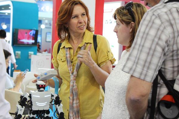 海外客商現(xiàn)場(chǎng)體驗(yàn)?zāi)芰︼L(fēng)暴類人機(jī)器人系列