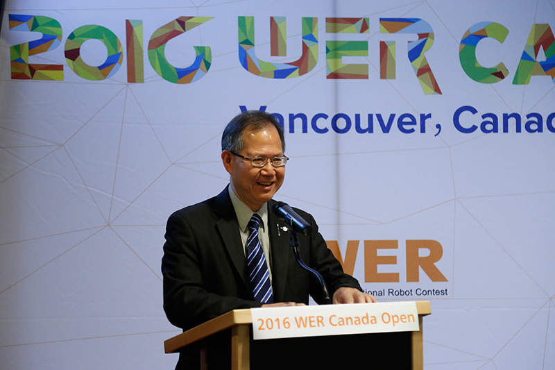WER加拿大主席兼加拿大青少年機器人俱樂部主席Dr. Chris Zhang、BC省省議員李燦明先生、溫哥華市市議員Andrew Reimer先生、中華人民共和國駐溫哥華總領事館僑務組胡少聰領事、能力風暴品牌總經(jīng)理蘭之君先生等出席本次賽事,溫哥華市長Gregor Robertson 先生發(fā)來賀信。Dr. Chris Zhang對選手們表現(xiàn)出的自信及勇于探索的精神給予高度評價,并充分肯定了WER在推動青少年科技素養(yǎng)培養(yǎng)方面的積極意義。