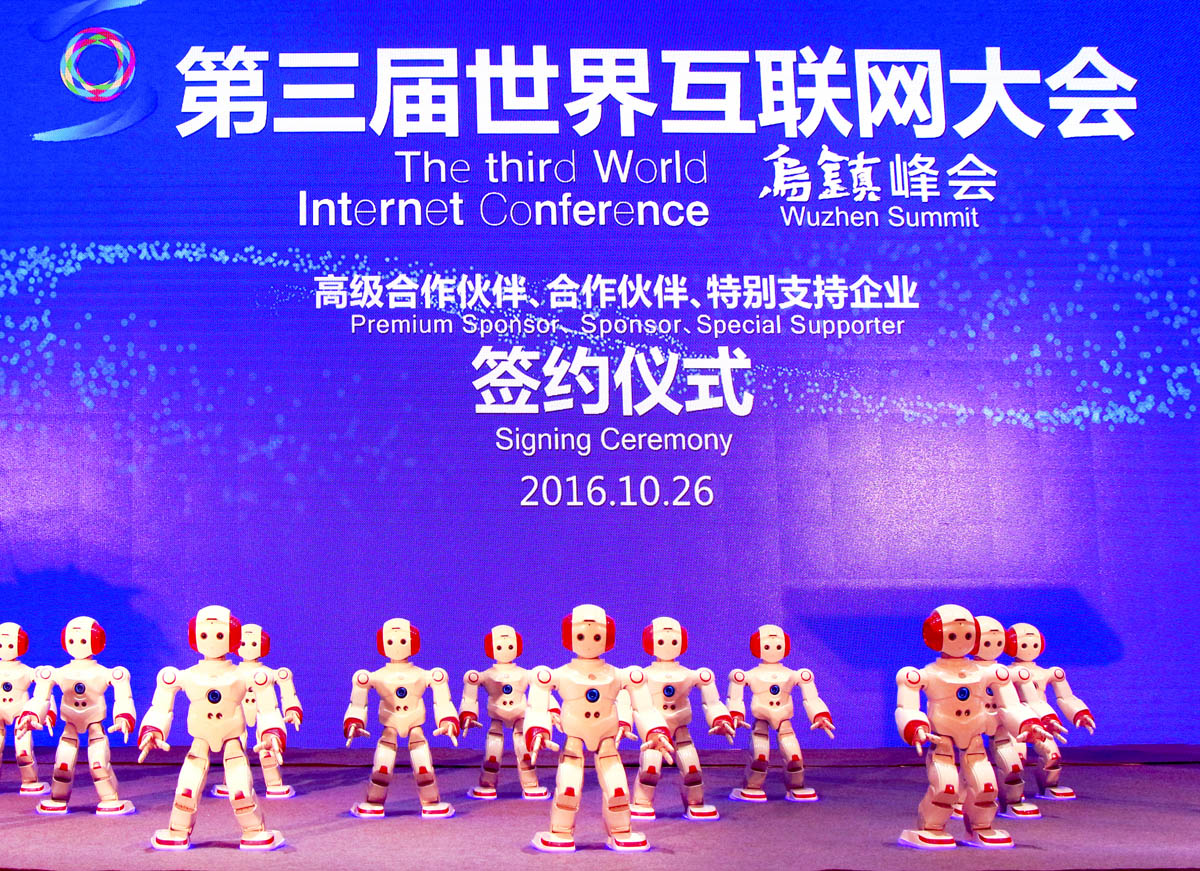 2016年10月26日,在一場(chǎng)別開生面的能力風(fēng)暴類人機(jī)器人的舞蹈表演之后,第三屆世界互聯(lián)網(wǎng)大會(huì)?烏鎮(zhèn)峰會(huì)合作伙伴簽約儀式正式開始,包括阿里巴巴集團(tuán)、寶馬(中國)、富士康、上海未來伙伴機(jī)器人有限公司等全球知名企業(yè)成為本屆大會(huì)合作伙伴。