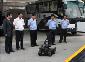 DG-X5項目小組向王局長、特警支隊場領(lǐng)導(dǎo)和隊員成功的演示了排爆機(jī)器人遠(yuǎn)程遙控、遠(yuǎn)程視頻輸出、遠(yuǎn)程語音對話、跨越障礙物、爬樓梯、爆炸物處理等任務(wù),王局長在觀看演示的同時,向項目小組詳細(xì)詢問機(jī)器人的優(yōu)勢和功能,對于DG-X5所采用模塊化結(jié)構(gòu)設(shè)計,人性化的操控方式,遠(yuǎn)距離有效通訊以及出色的排爆能力表達(dá)高度的認(rèn)可和好評。